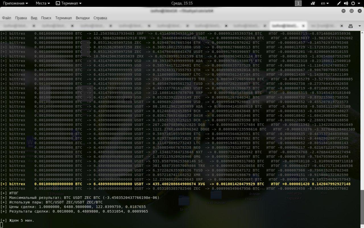 - бот работает с 130 биржами и 289 парами