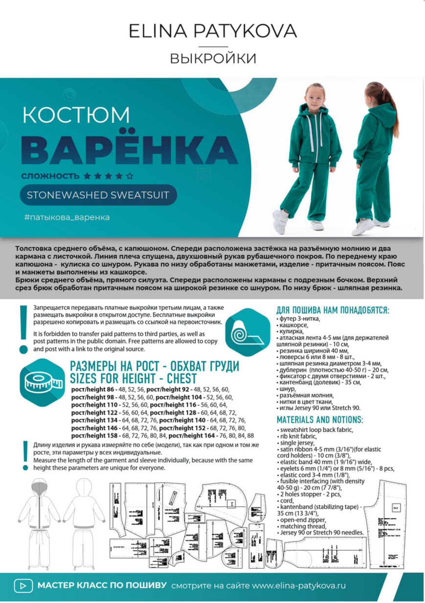 [Выкройки] Брюки "Варенка" — девочки. Все размеры 86-164 [Элина Патыкова]