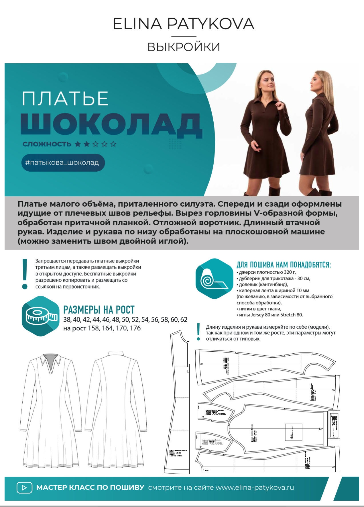 [Выкройки] Платье Шоколад — женщины. Размеры 42-44, рост 158 [Элина Патыкова]