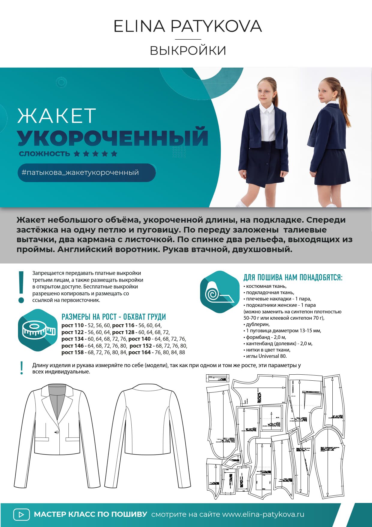 [Выкройки] Жакет Укороченный — девочки. Размеры 110 - 164 [Элина Патыкова]