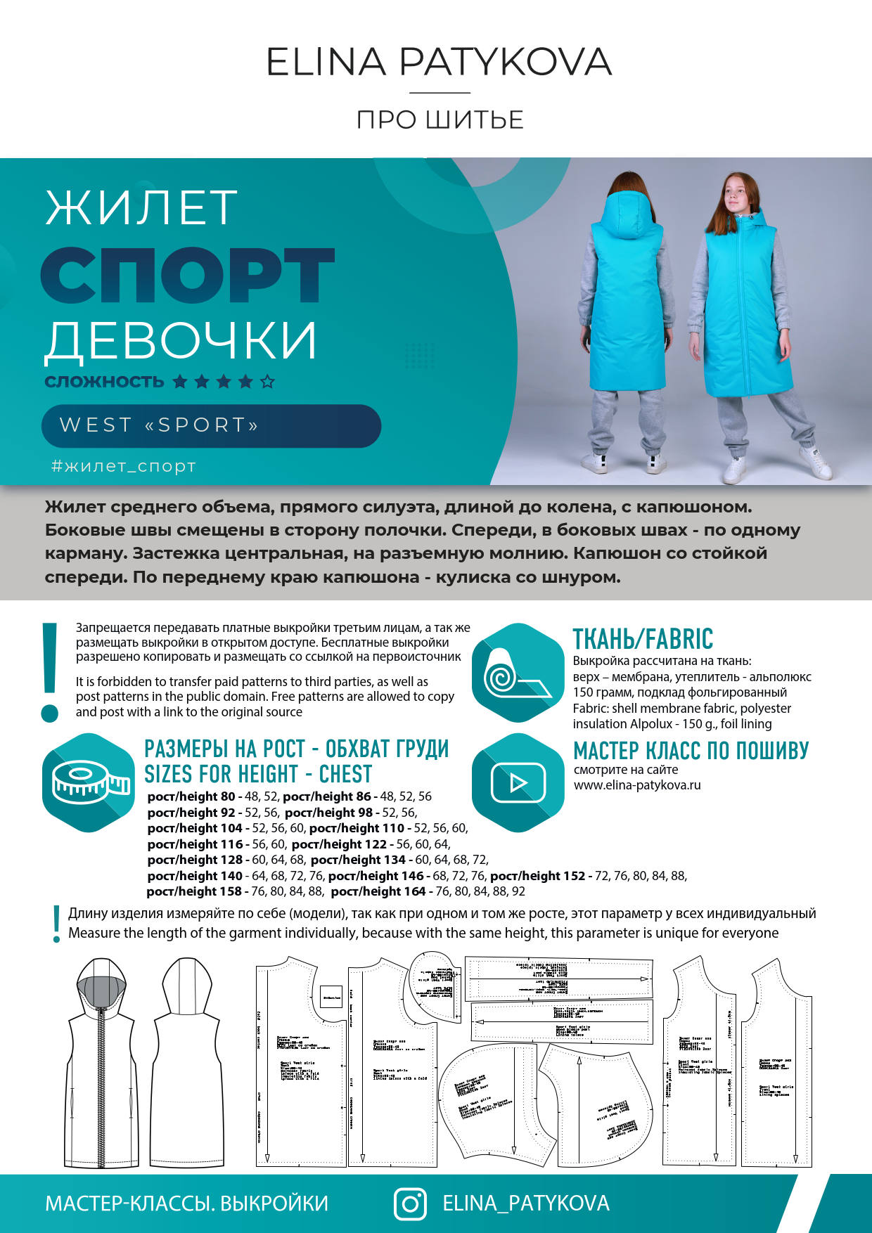 [Выкройки] Жилет Спорт, девочки. Размеры 80-164 [Элина Патыкова]