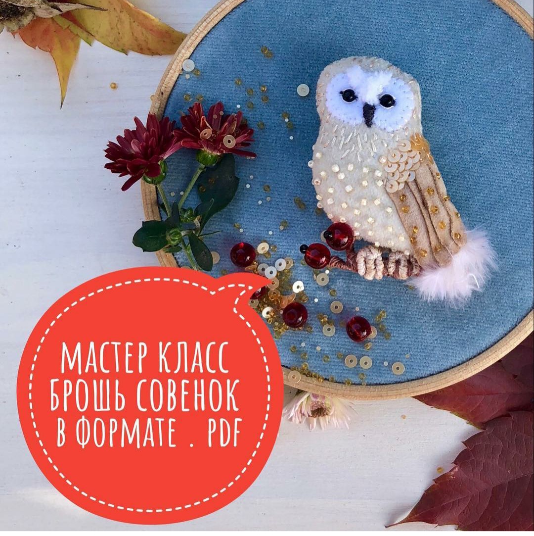 [Вышивка] МК "Брошь Совёнок" [Елена Антонова]