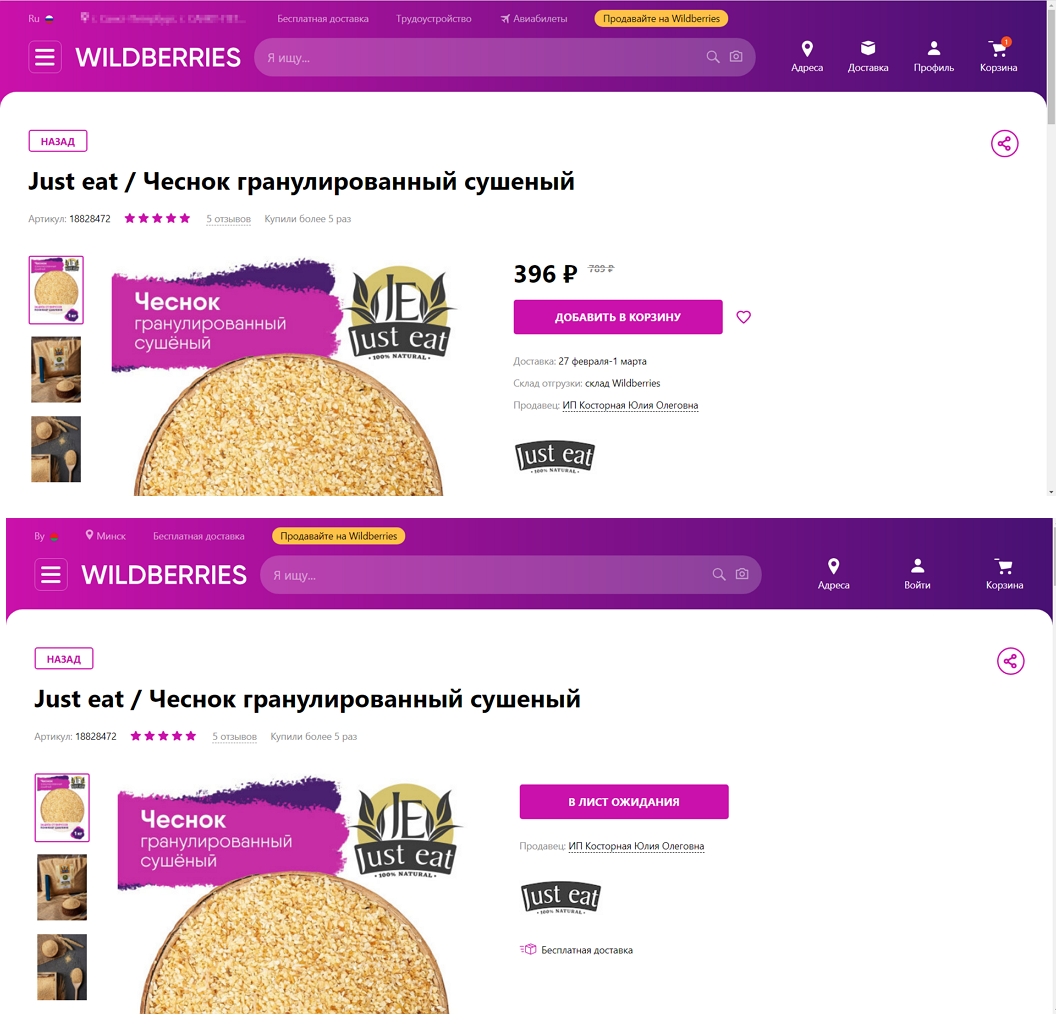 Поповоду региональности - ее можно принудительно выбрать, тогда переадресует на нужный домен wildberries:
