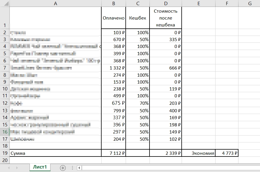 Но скажу о товарах в общем бралось с кешбеком от 50% до 100% меньше не интересовало))