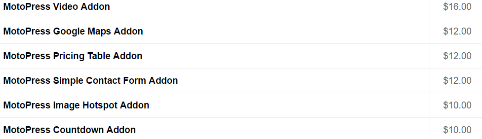 [WP]Аддоны Motopress: Pricing Table, Slider, Google Maps и пр. (продление 2017)