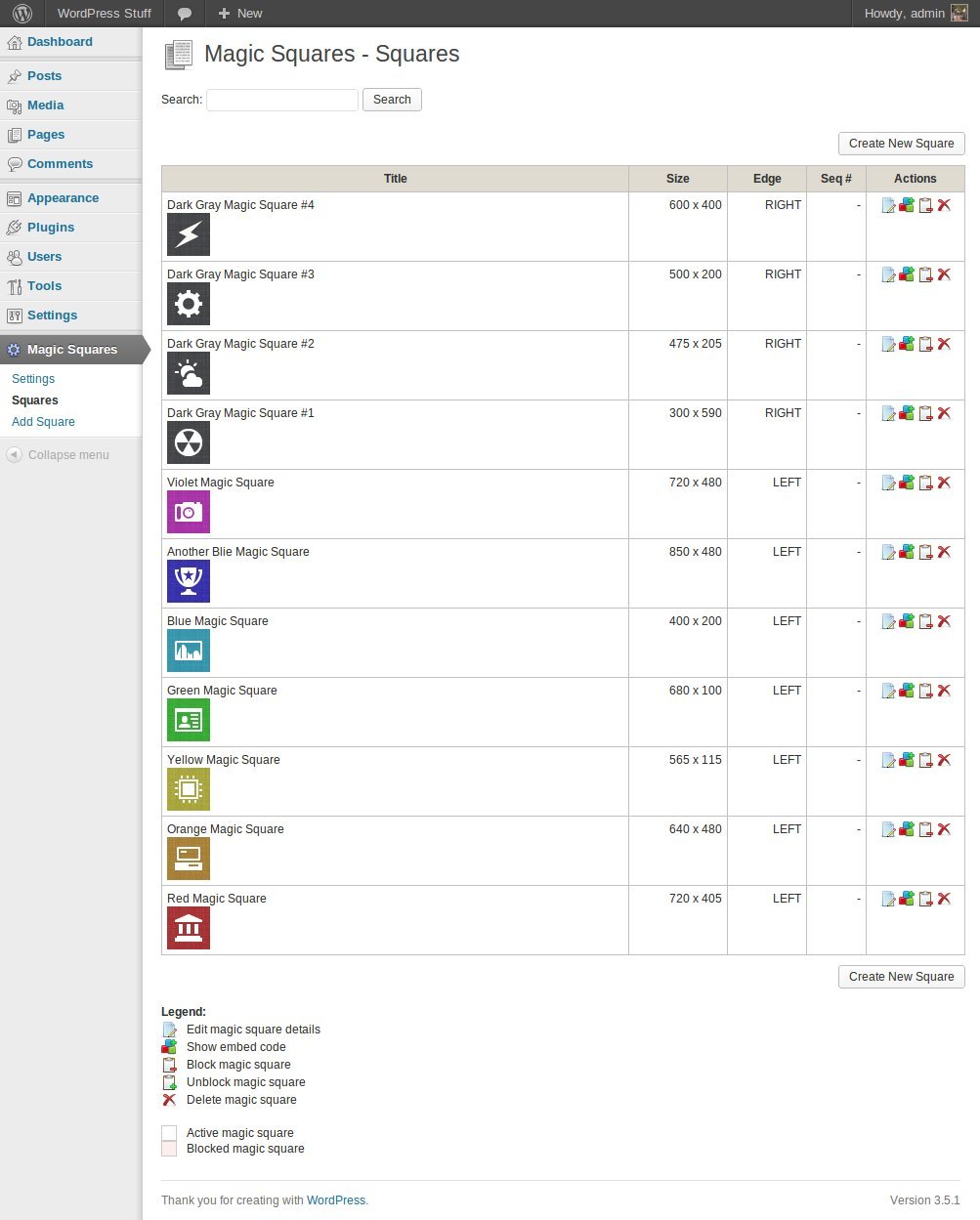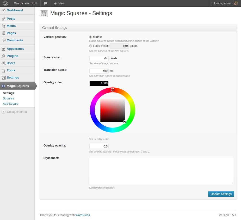 WP плагин анимационной панели - Magic Squares