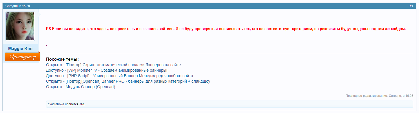 Тема в разделе "Скрипты и программы", создана пользователем Maggie Kim, 24 май 2018.