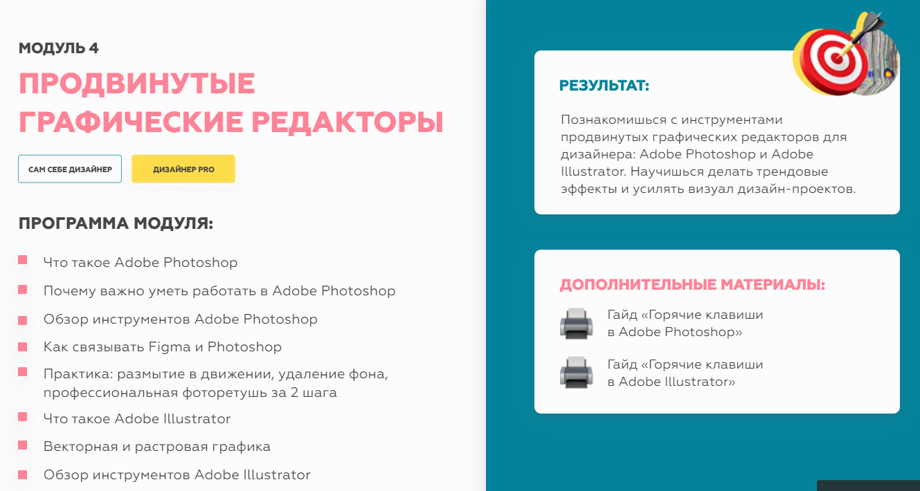 На курсе «Заработок на дизайне» ты получишь возможность освоить более 8 способов заработка в сфере графического дизайна на основе опыта 10 экспертов-спикеров.