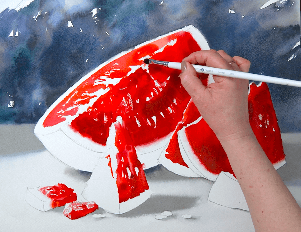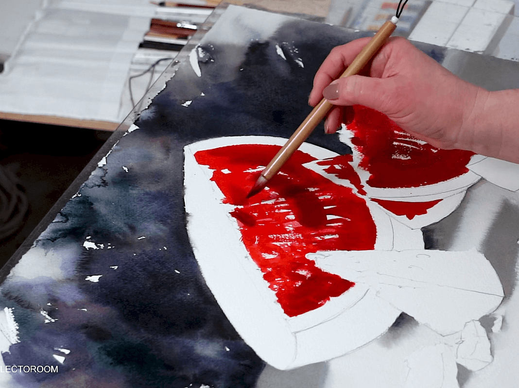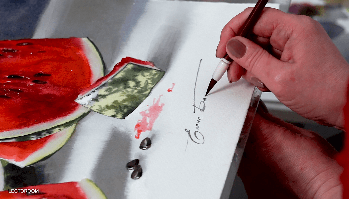 Живопись натюрморта с арбузом акварелью [lectoroom] [Елена Базанова]