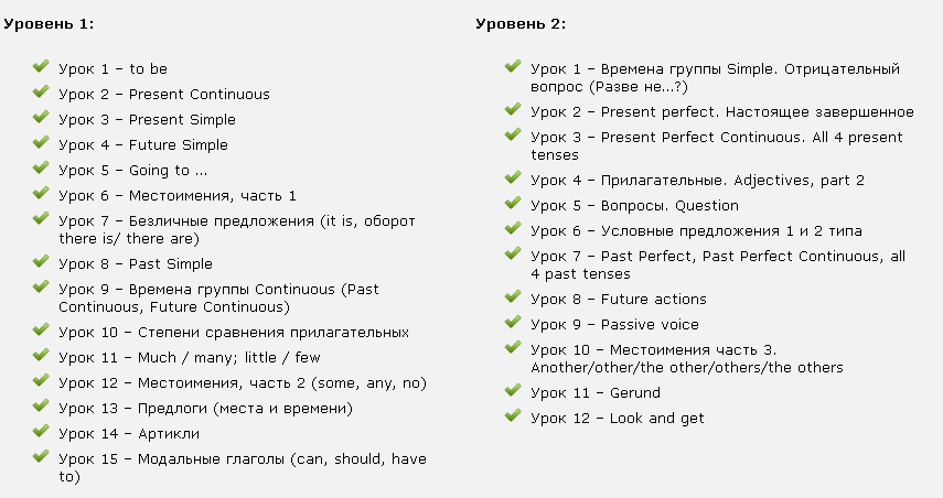 Живые уроки по грамматике Уровень 1 и 2 – это два самостоятельных курса, рассчитанных на разные уровни подготовки. Начальный и средний.